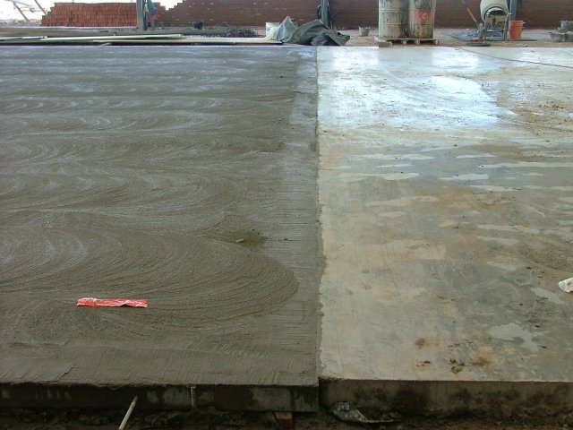 Machine power floated concrete floors (smoothing), trowelled finish with hardener, fibrage, etc.: